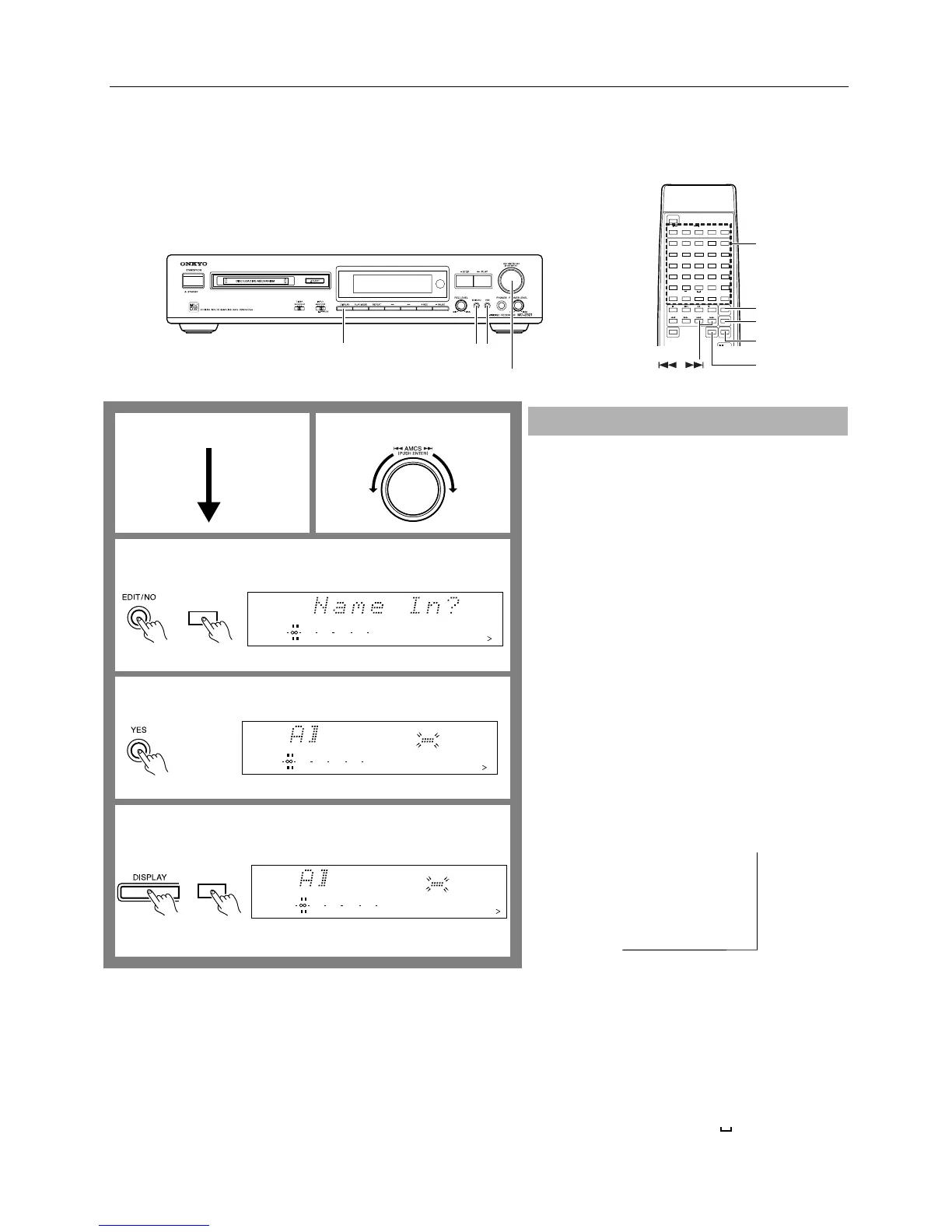 You can name tracks and discs using the AMCS knob on the front panel or the