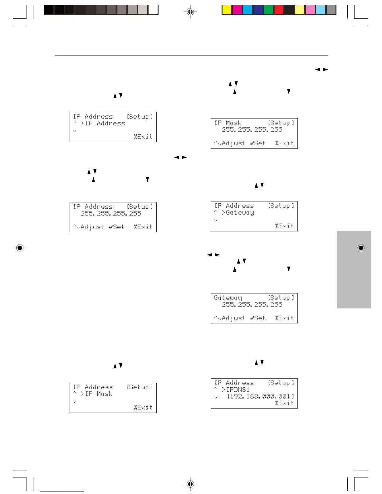 “IP Address” setup menu, select “IP Mask”