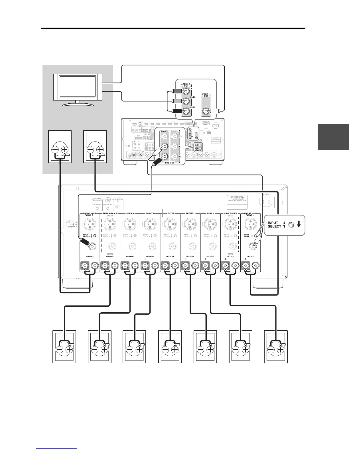 Main room: You can enjoy up to 7-channel surround-sound playback.
