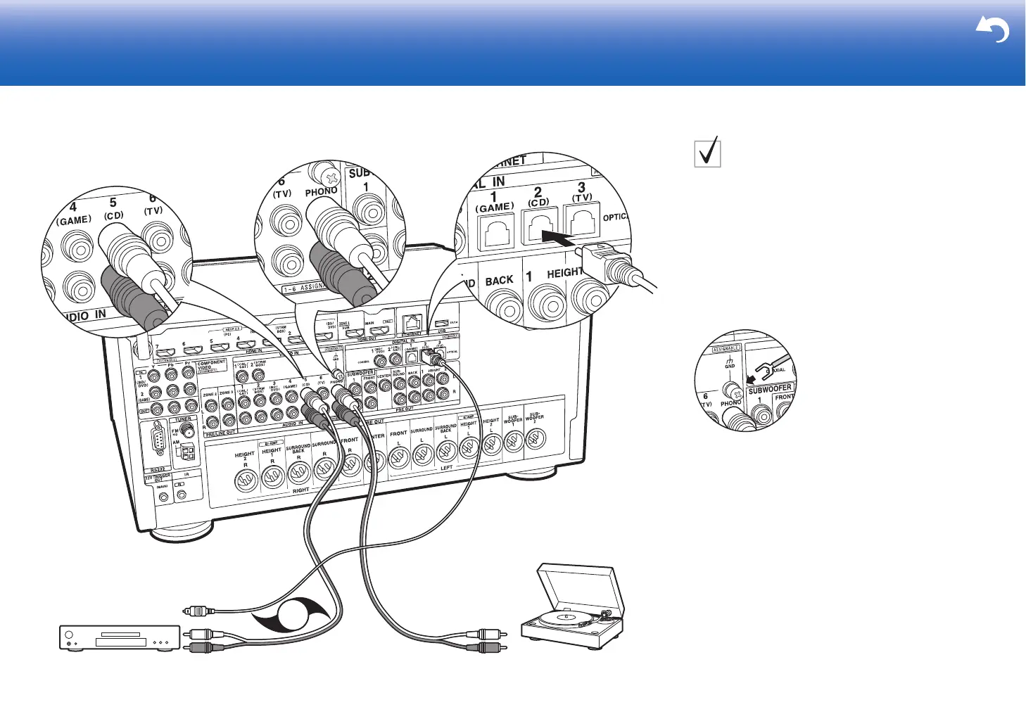 analog audio cable. You can also connect a turntable that