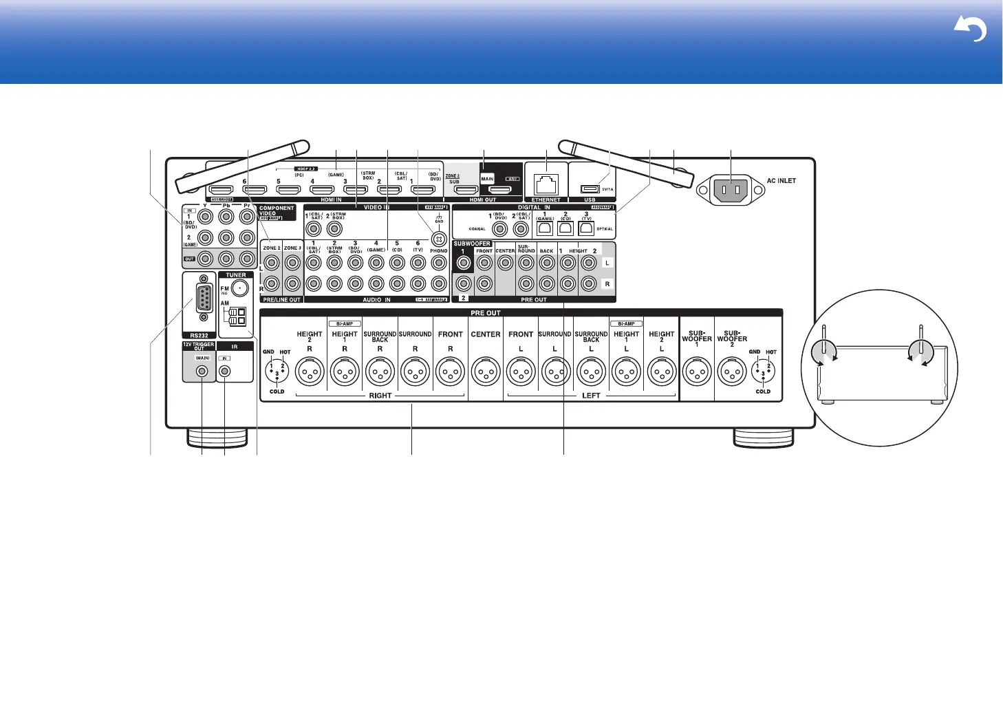 IR IN port: Allows you to connect a multiroom remote