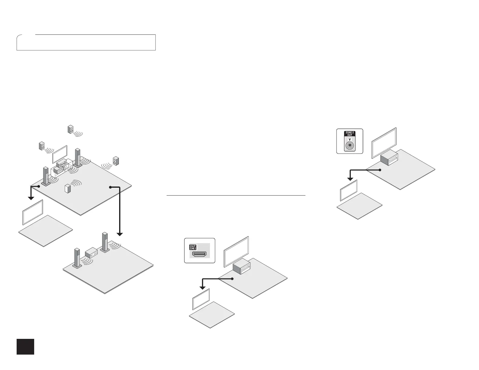 between the HDMI OUT ZONE 2 jack of the unit and the