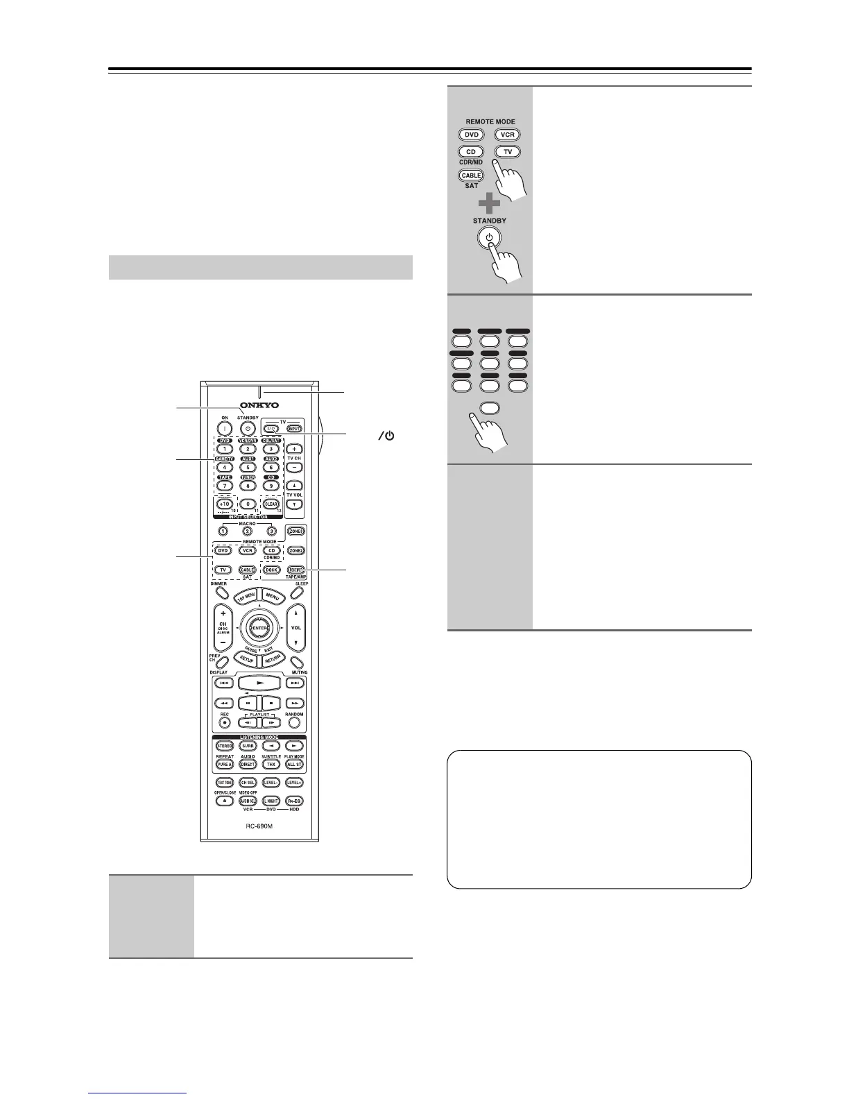 priate remote control code to the [CD] REMOTE