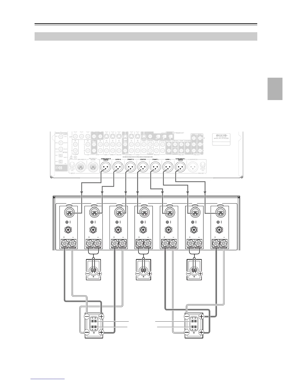 See your multichannel power amplifier’s instruction manual for more information on connecting speakers.