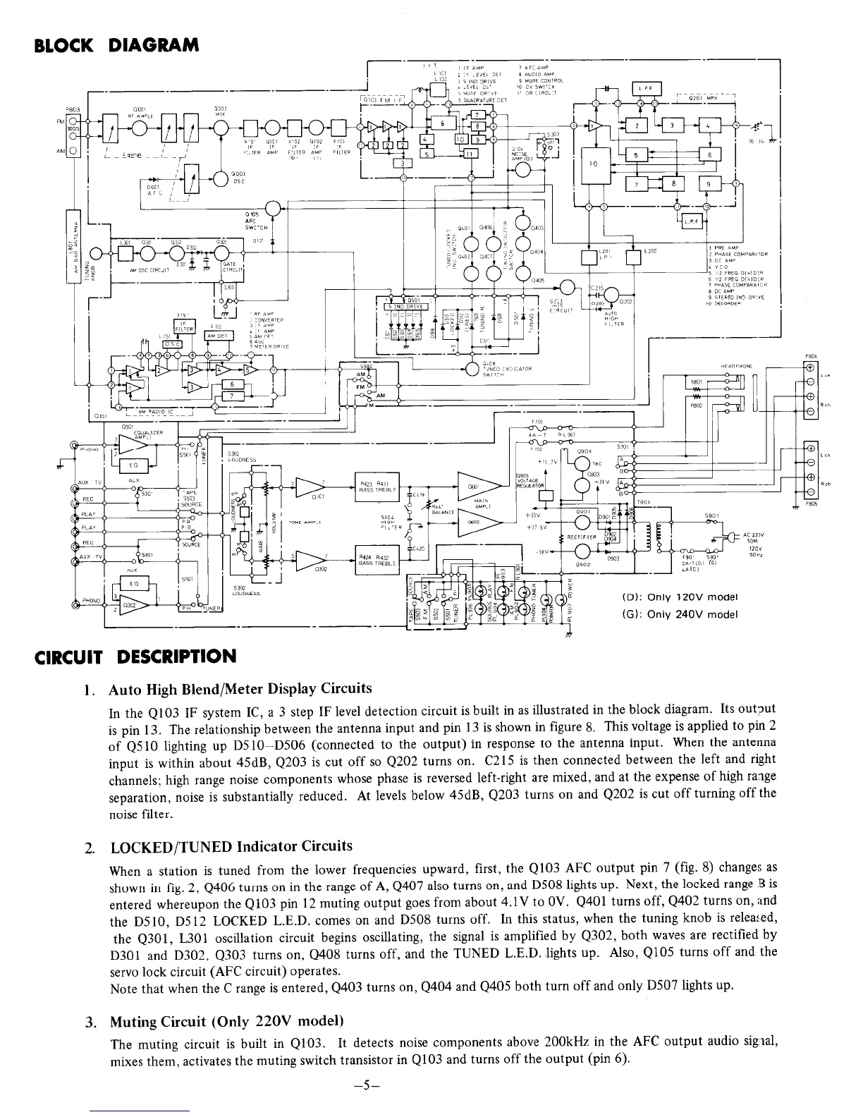 Onkyo TX-20 - Circuit Description; Auto High Blend;Meter Display Circuits; Locked;Tuned Indicator Circuits; Muting Circuit (Only 220 V model)