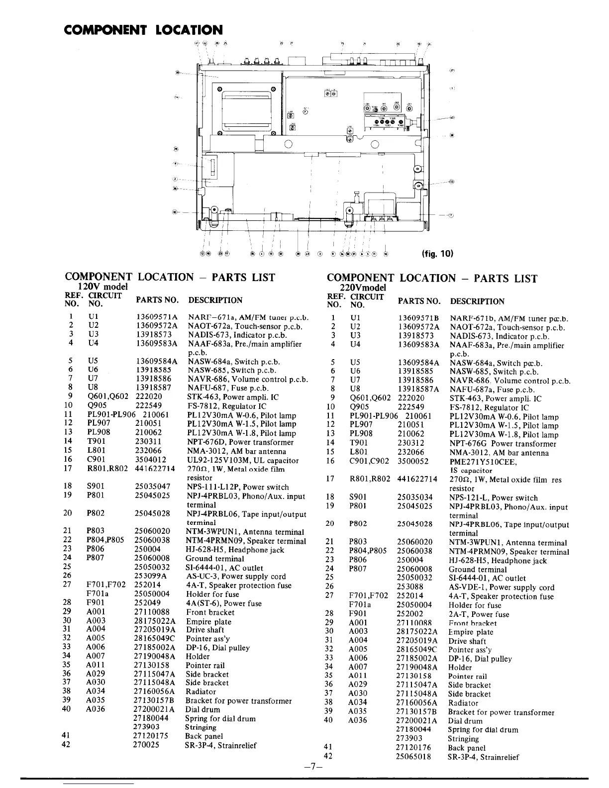 Onkyo TX-20 - Component Location; 120 V Model Component Location and Parts List; 220 V Model Component Location and Parts List