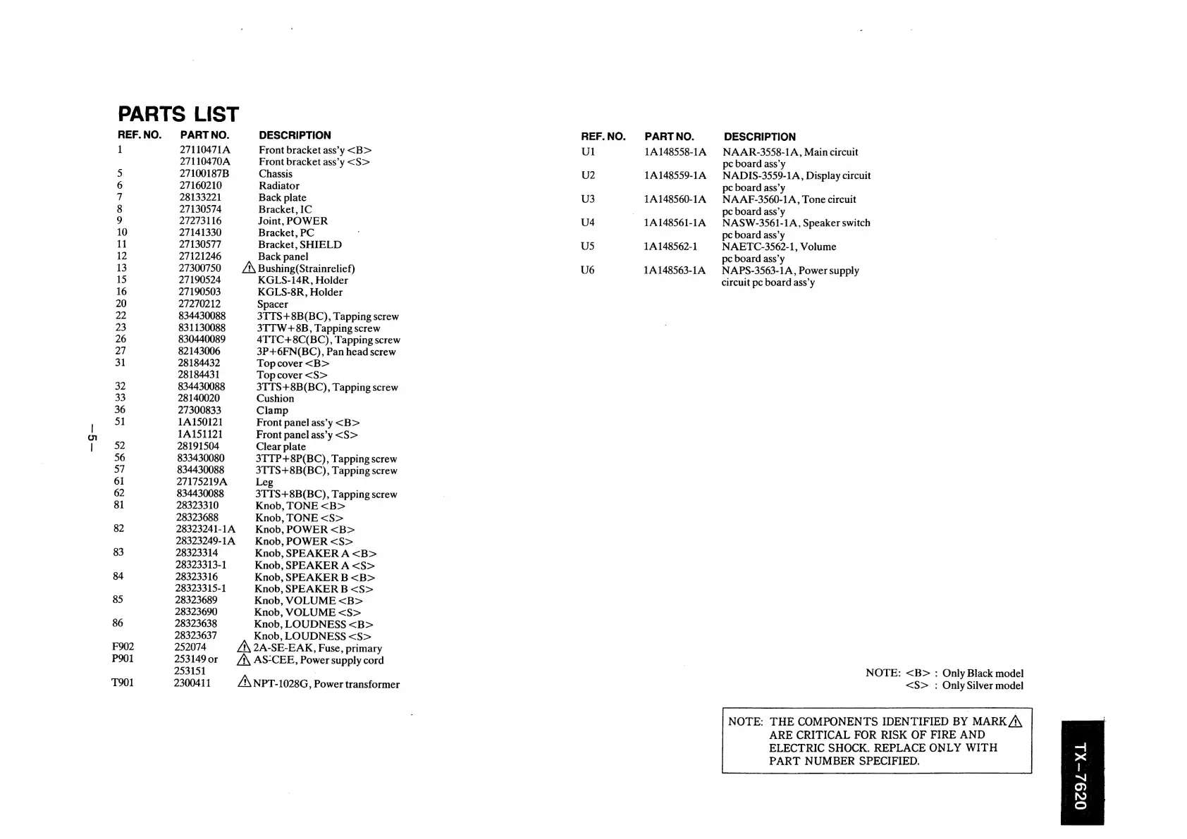 Onkyo TX-7620 - Parts List