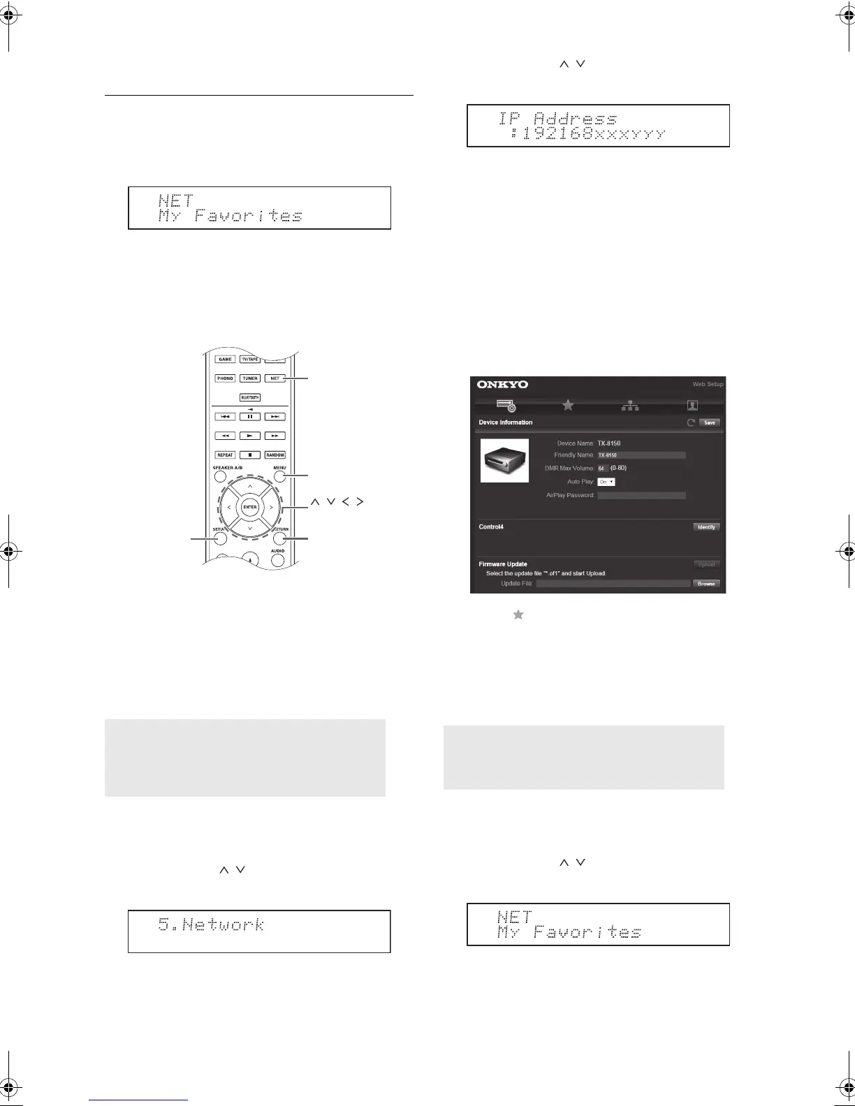 the NET button. “My Favorites” allows you to register up