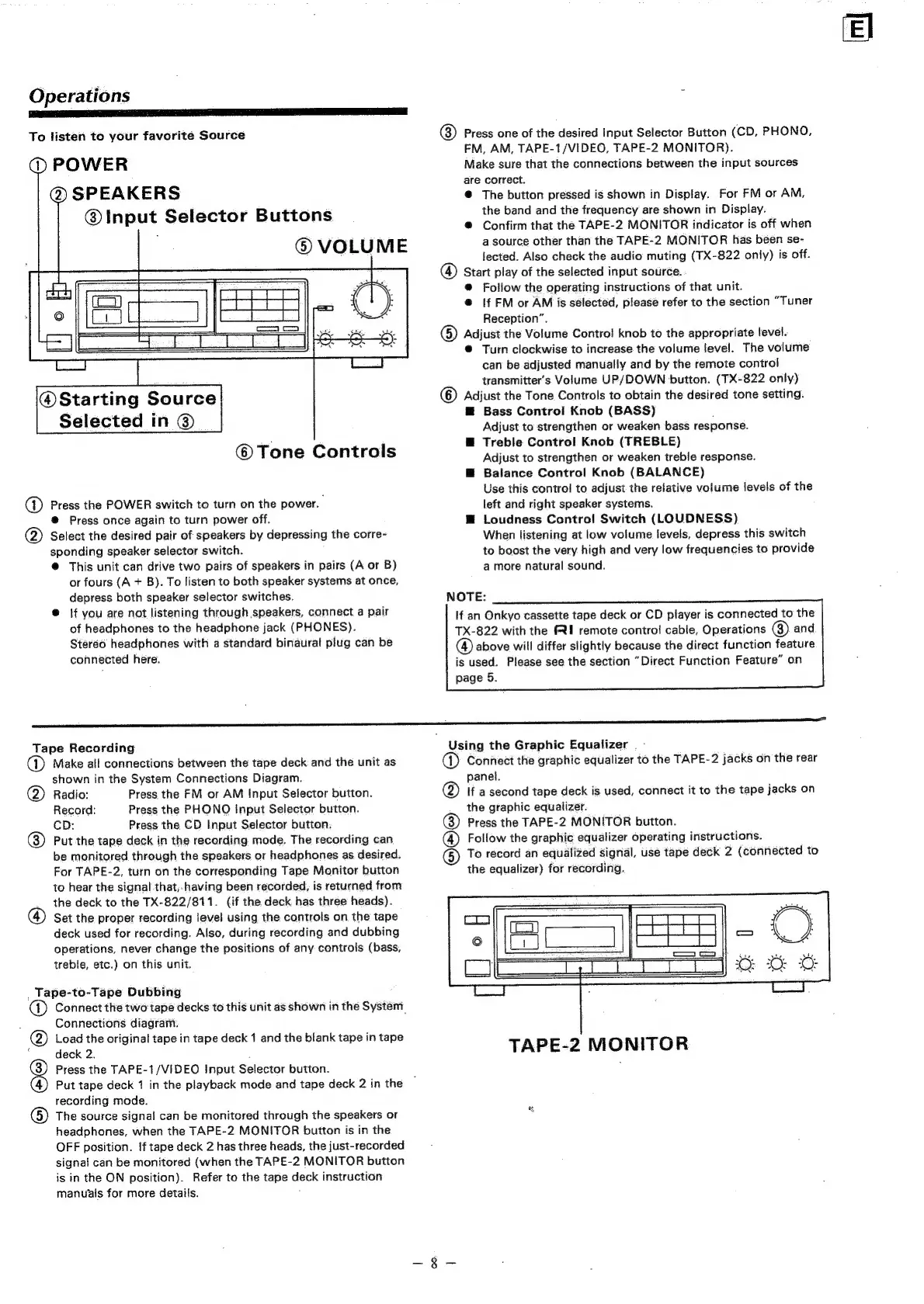 Onkyo TX-822 - Operations; Listening to Your Favorite Source; Tape Recording; Tape-to-Tape Dubbing