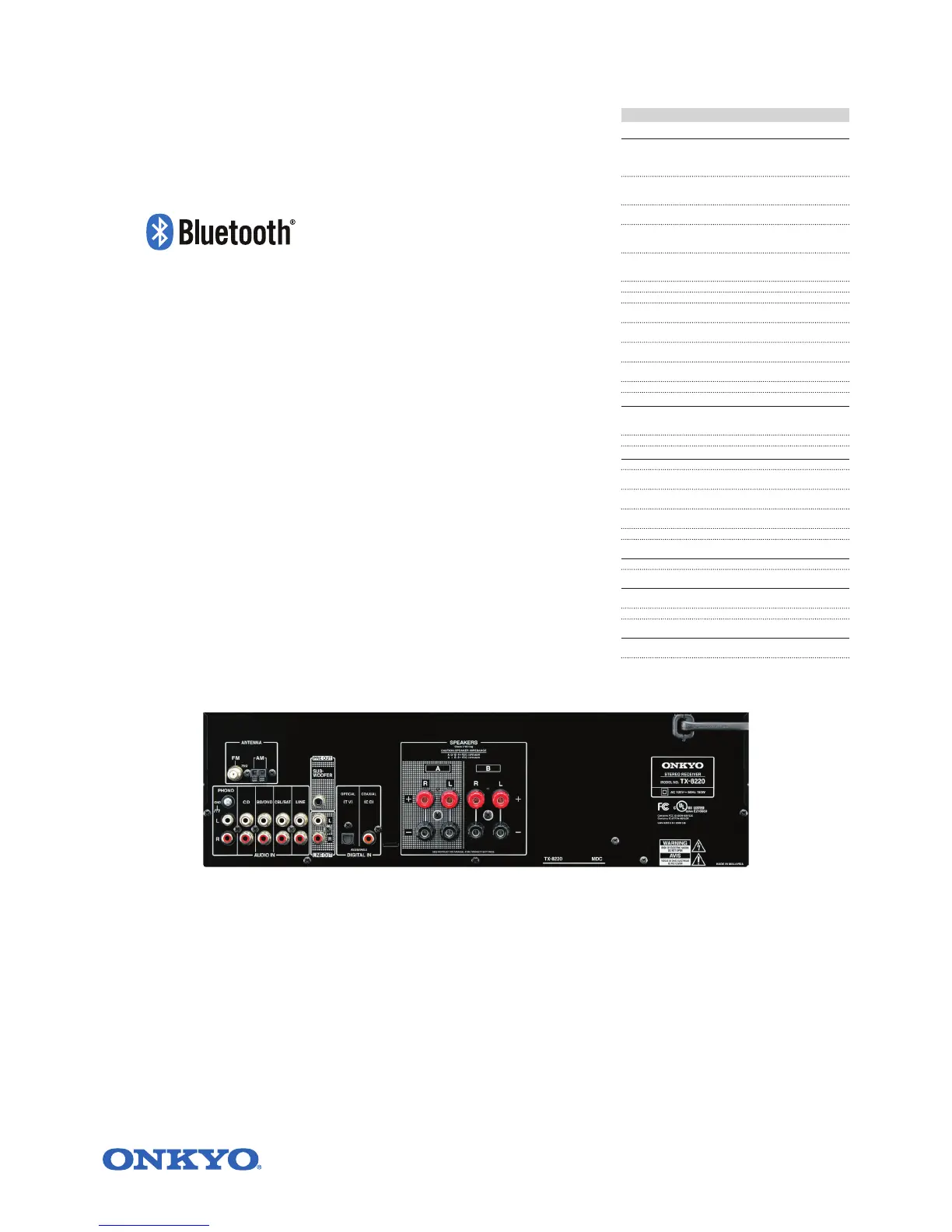 Due to a policy of continuous product improvement, Onkyo reserves the right to change specifications and appearance without notice. The Bluetooth