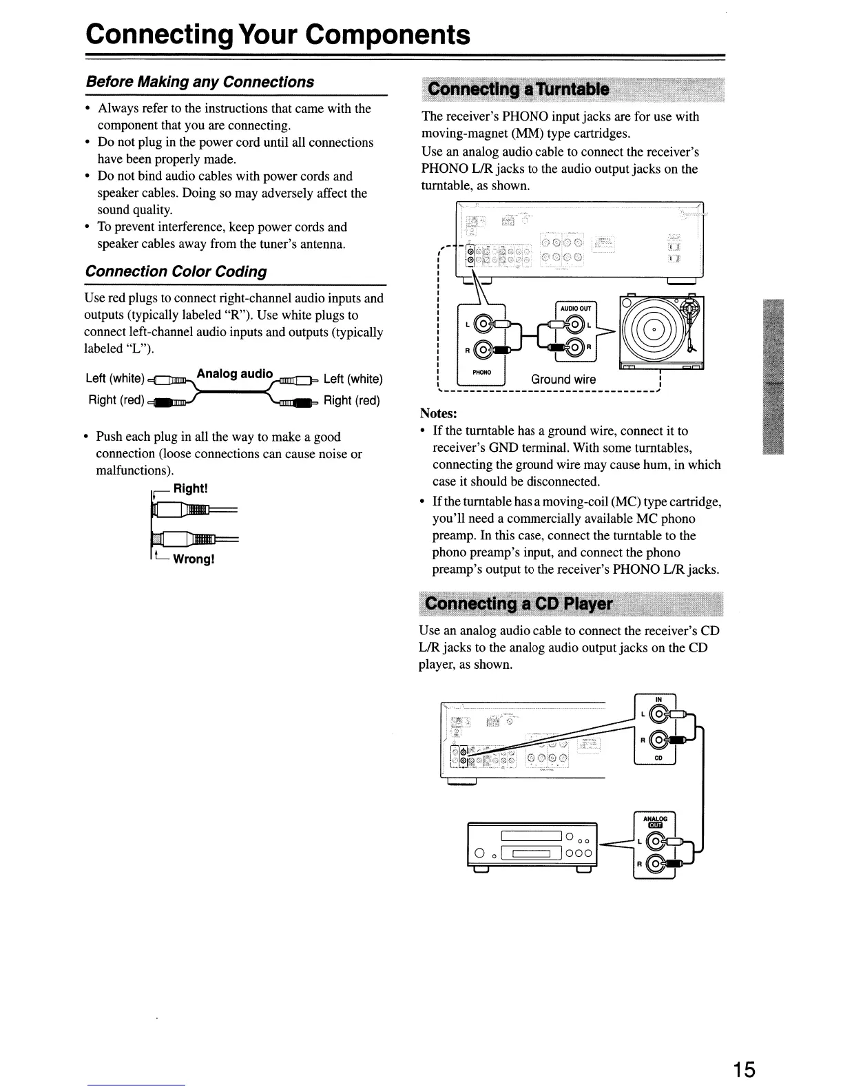 The receiver's PHONO input jacks are for use with