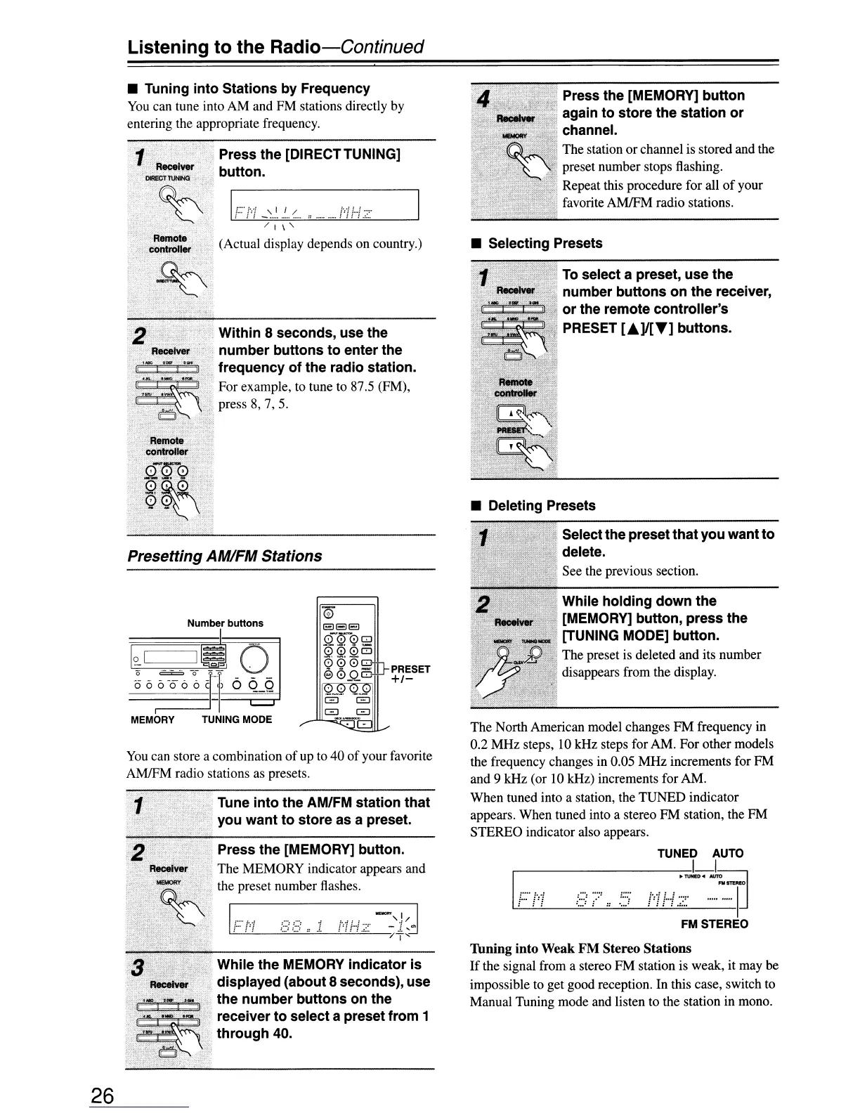 and 9 kHz (or 10 kHz) increments for AM.