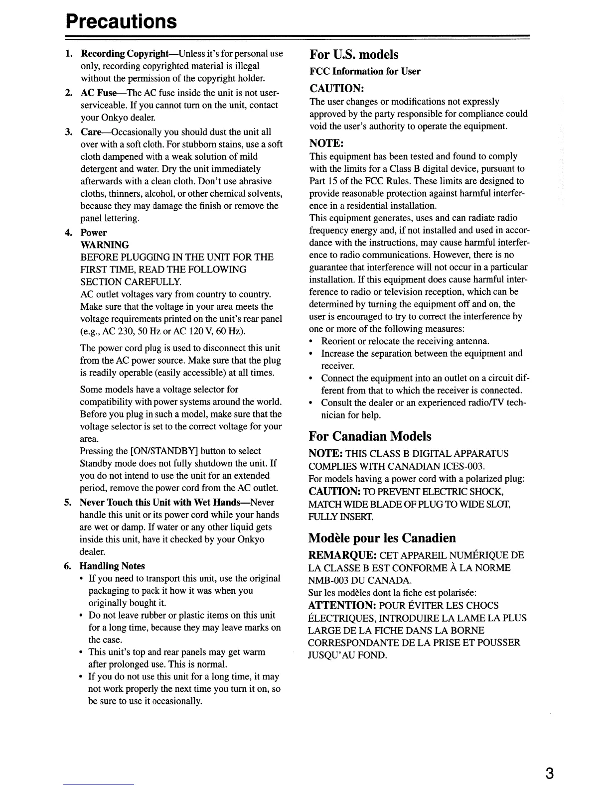 inside this unit, have it checked by your Onkyo