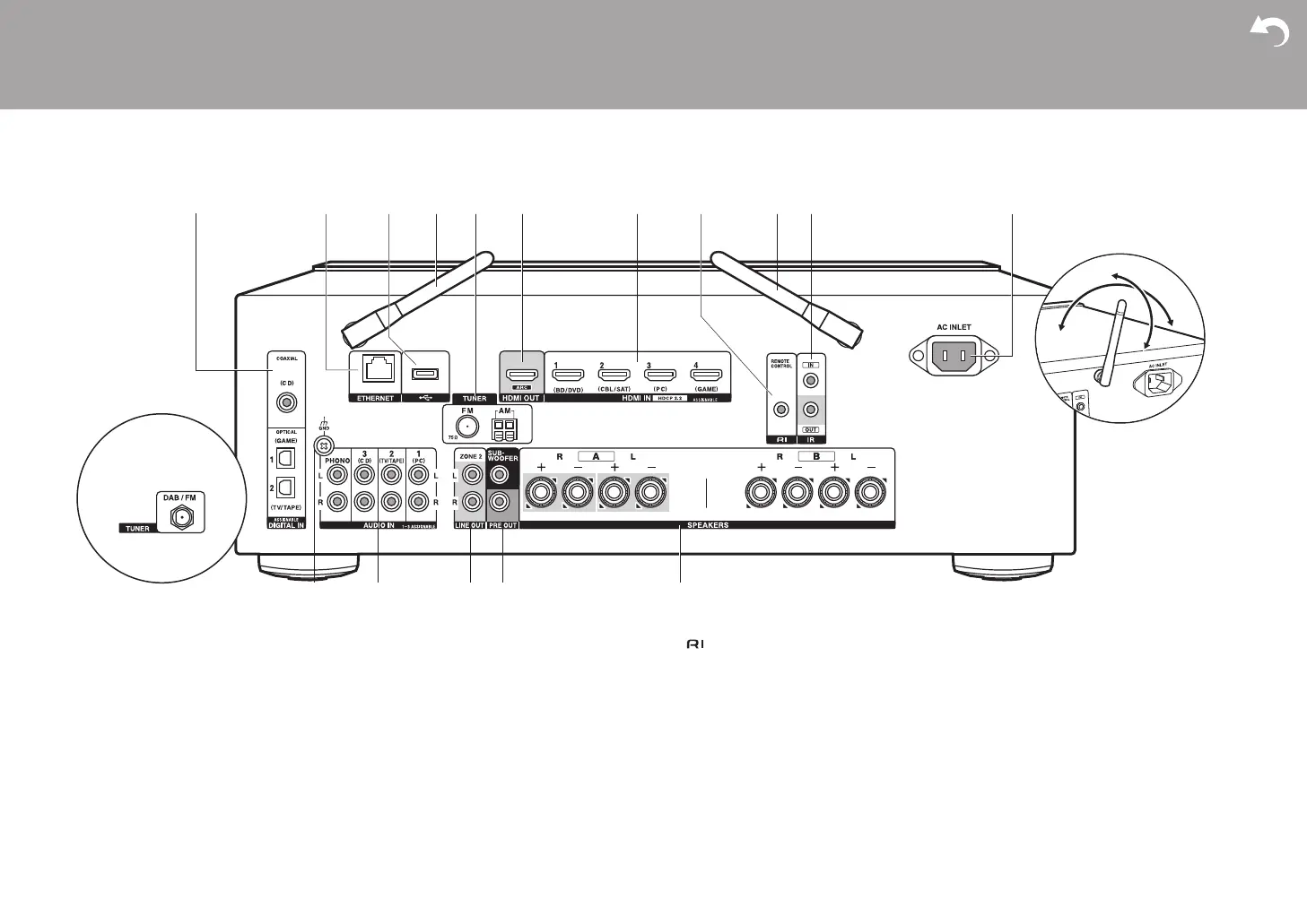TUNER DAB/FM terminal (European models): The supplied antenna is connected.