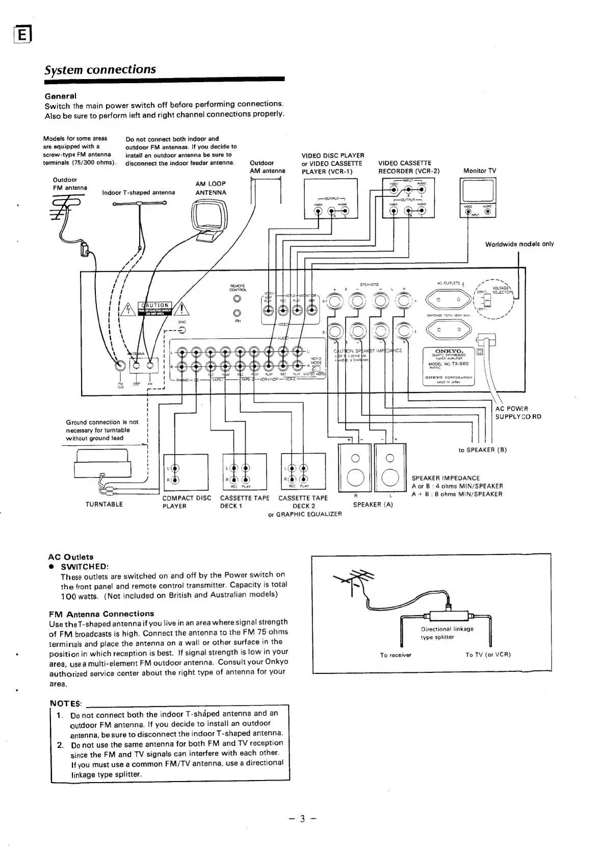 Onkyo TX-840 - System Connections; General Connection Guidelines; Antenna Connections