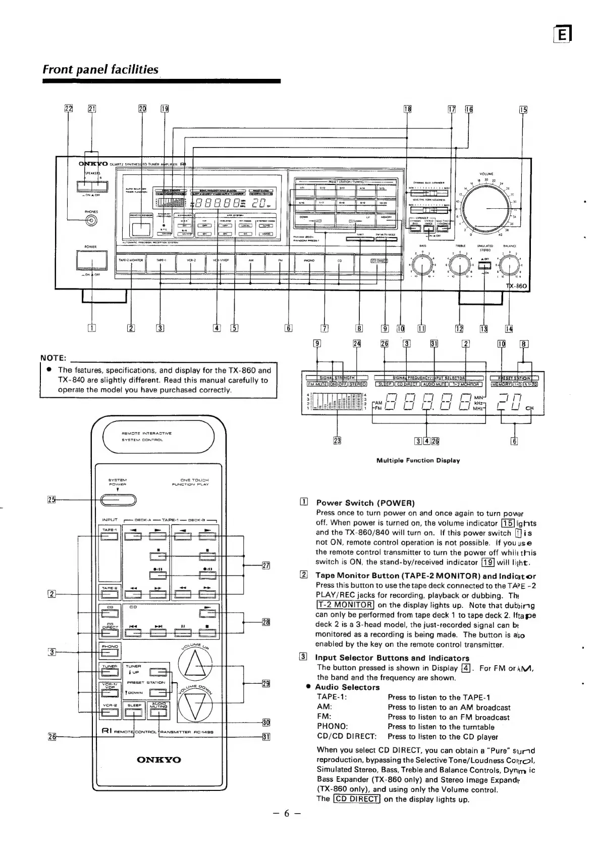 Onkyo TX-840 - Front Panel Facilities; Input Selector Buttons