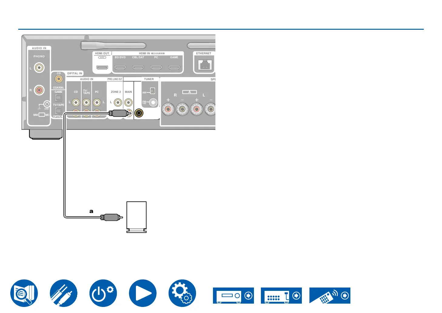 Connect a powered subwoofer with this unit using a subwoofer cable.
