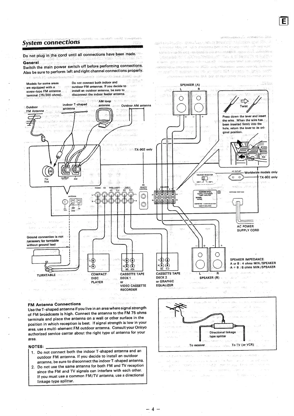 Onkyo TX-900 - System Connections; FM Antenna Connections