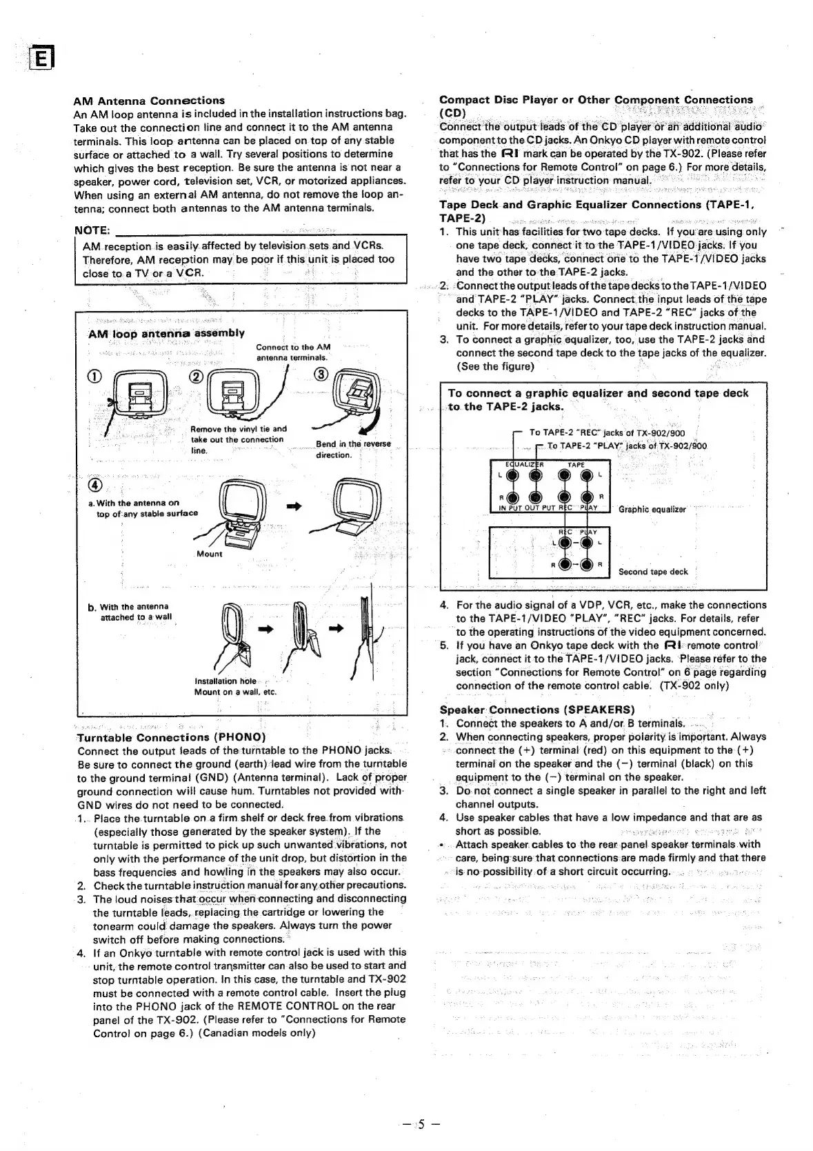 Onkyo TX-900 - AM Antenna Connections; Component Connections (CD, Tape, EQ); Turntable Connections (PHONO); Speaker Connections (SPEAKERS)