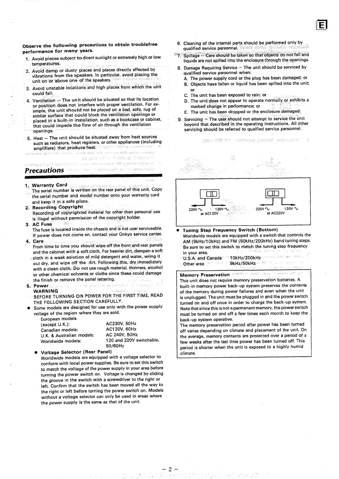 Onkyo TX-902 - Precautions; Warranty Card; Recording Copyright; AC Fuse
