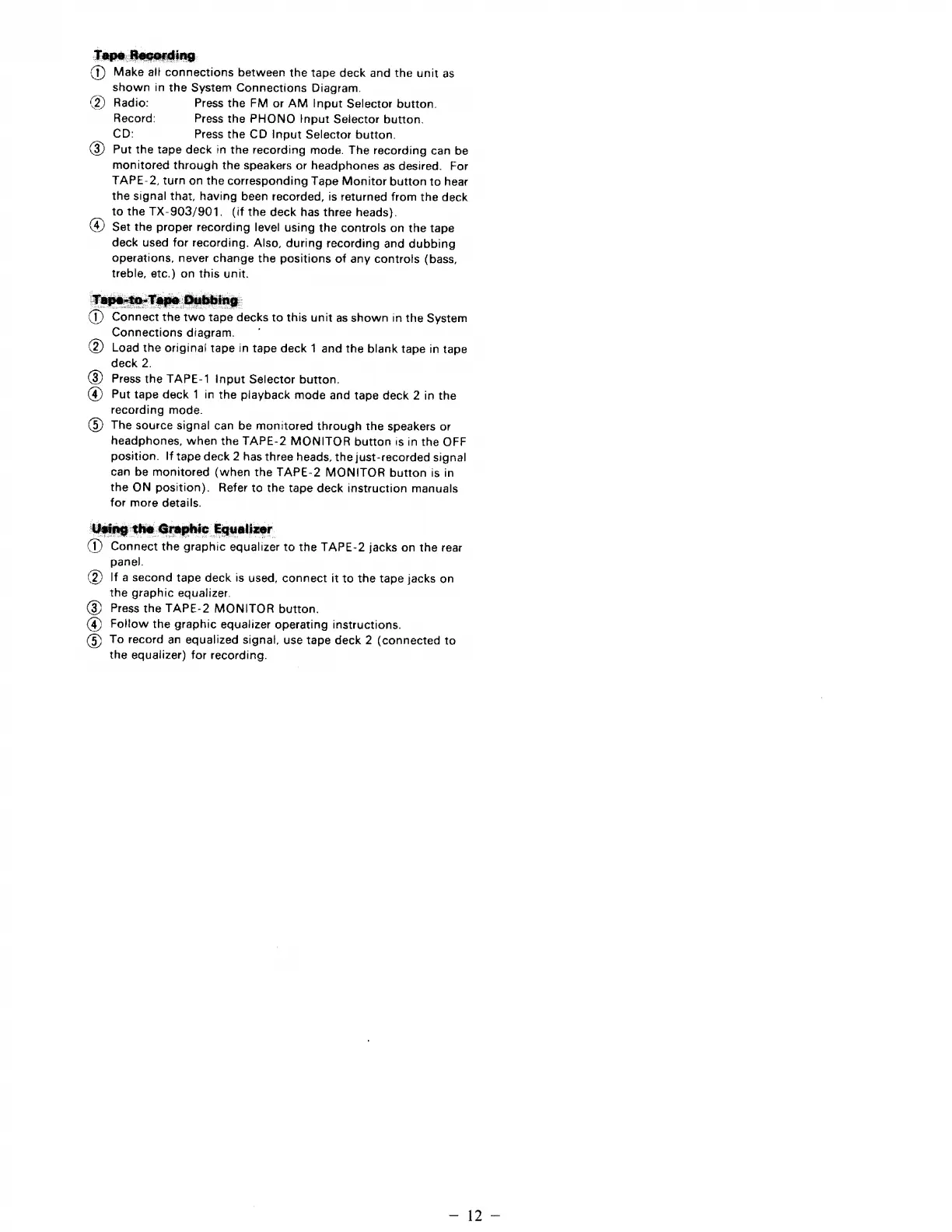 Onkyo TX-903 - Tape Recording and Dubbing