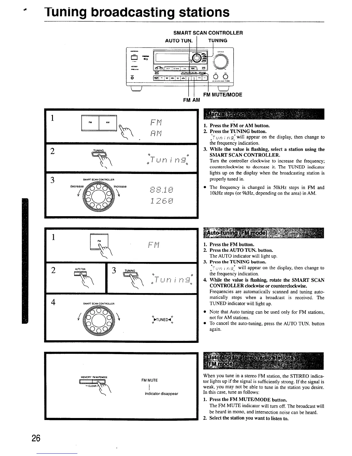 Onkyo TX-DS555 - Tuning Broadcasting Stations: Manual and Auto; Manual and Auto-Tuning Procedures; Listening to Stereo FM Stations Guide