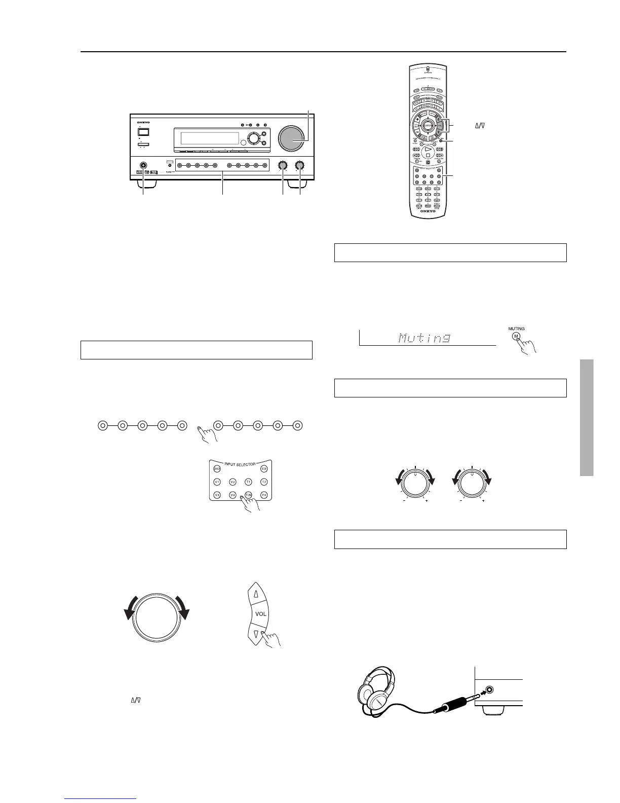 When pressed, “Muting” is displayed on the TX-DS696. Press the