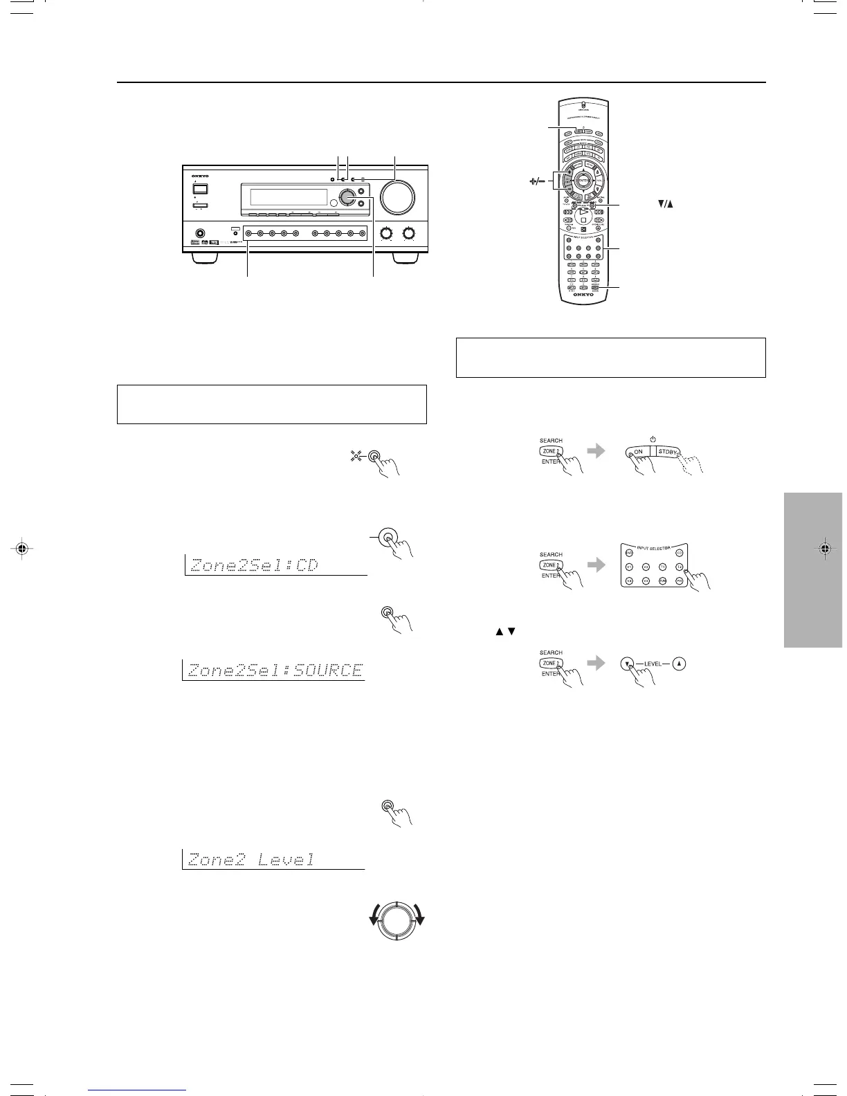 • When you are listening to a source in the remote zone (Zone 2), you can