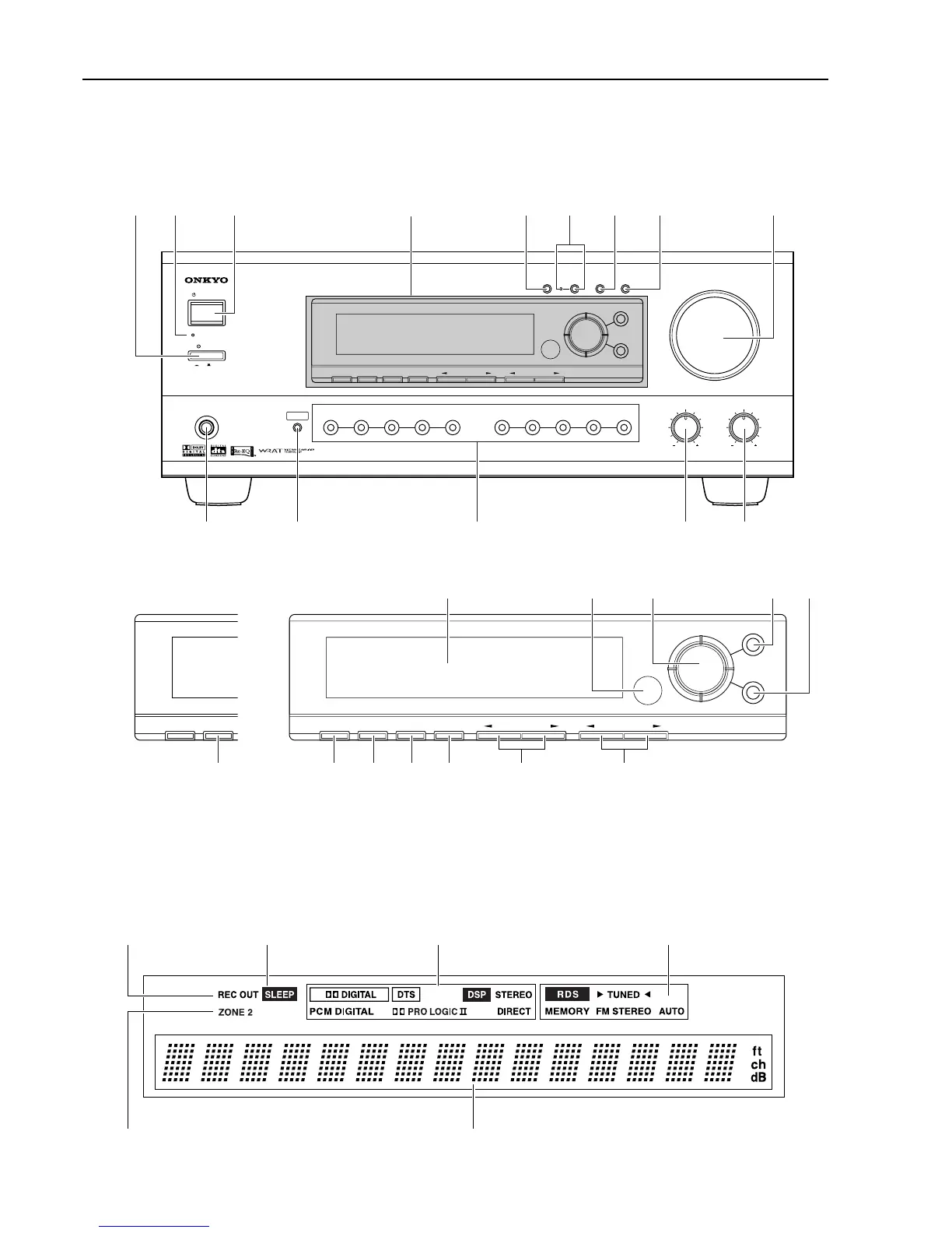 Here is an explanation of the controls and displays on the front panel of the TX-DS696.