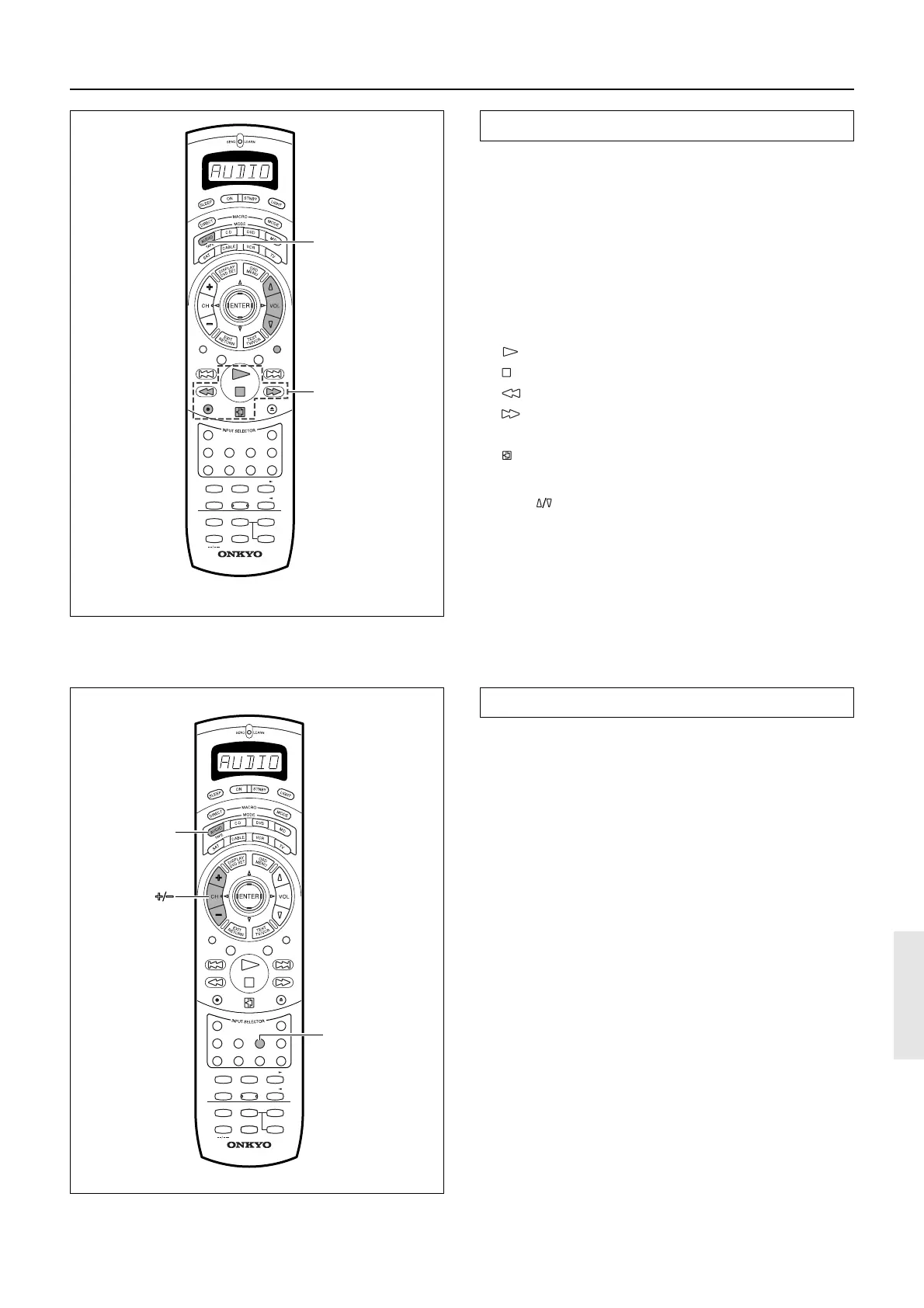 “AUDIO” appears in the remote controller display.