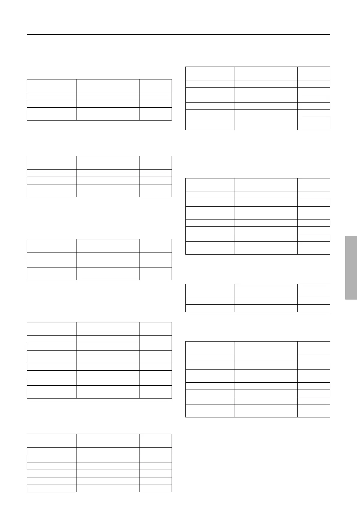 modes. The parameters that can be set are shown in the table
