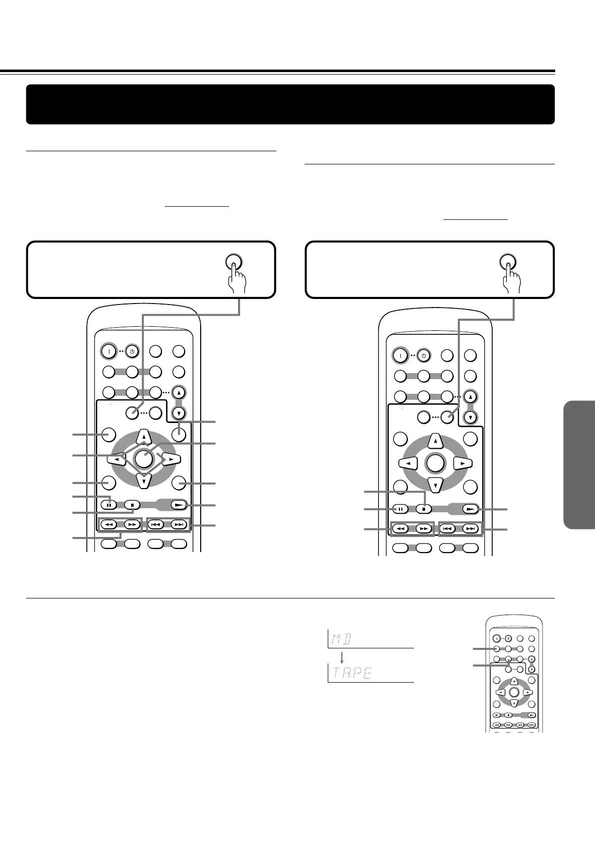 2 Press and hold MD/TAPE (or DVD/CD) on the remote