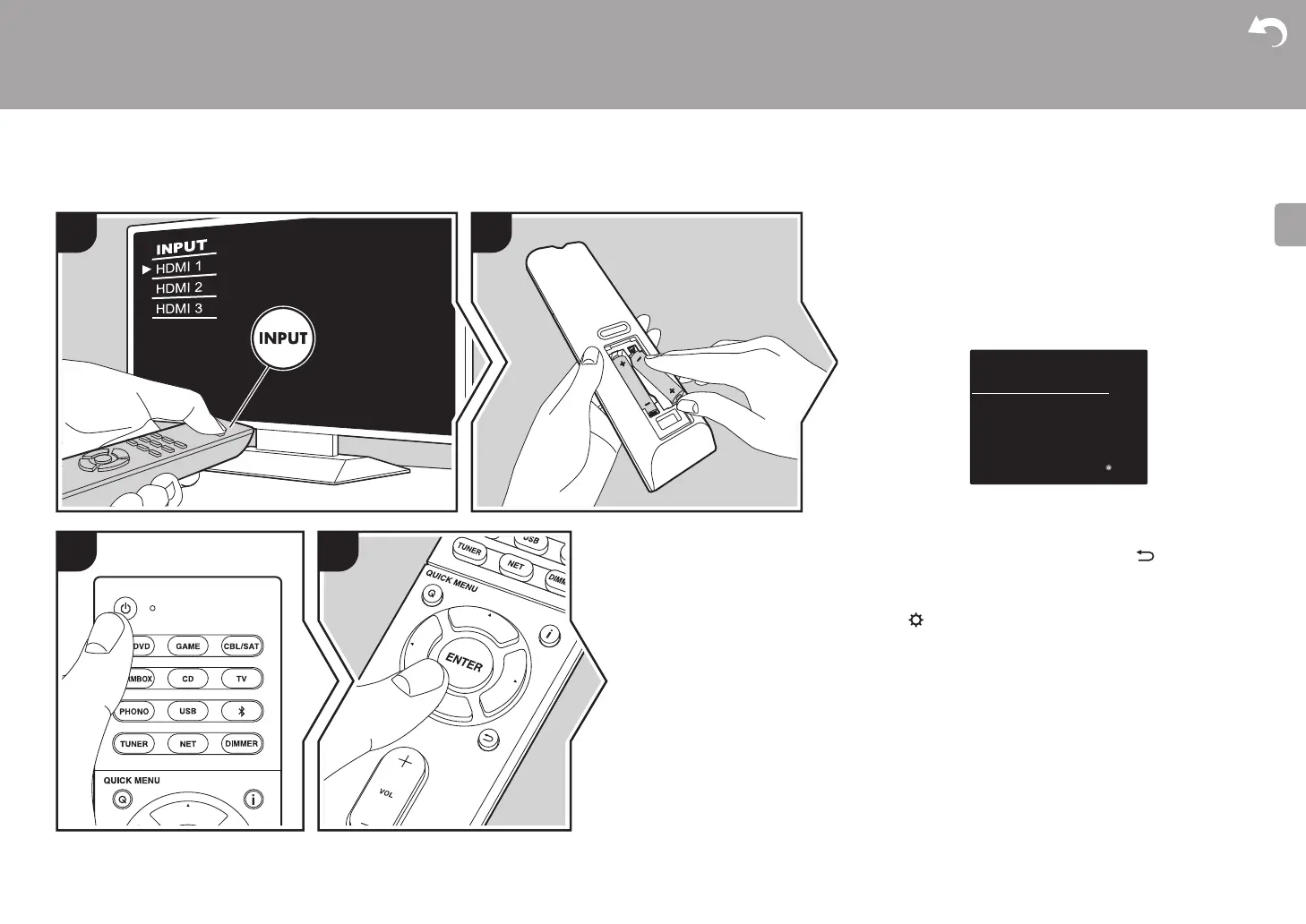 1. Switch the input on the TV to that assigned to the unit.