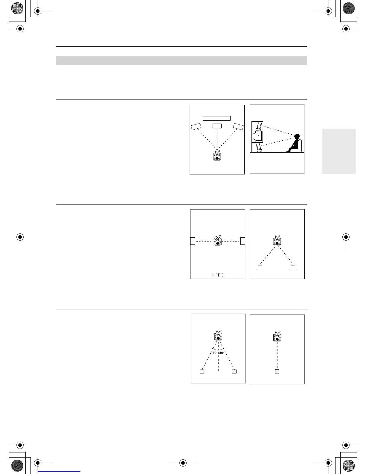 • If no center speaker is used, place the left and right front speakers closer to each other.