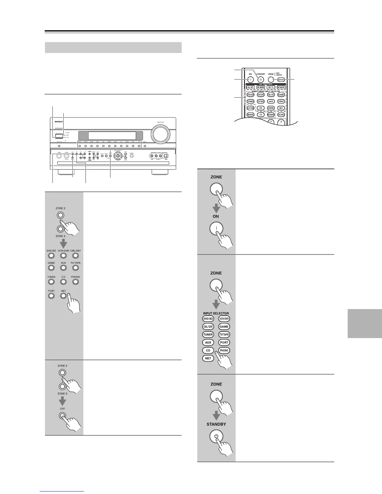 This section explains how to turn Zone 2/3 on and off,