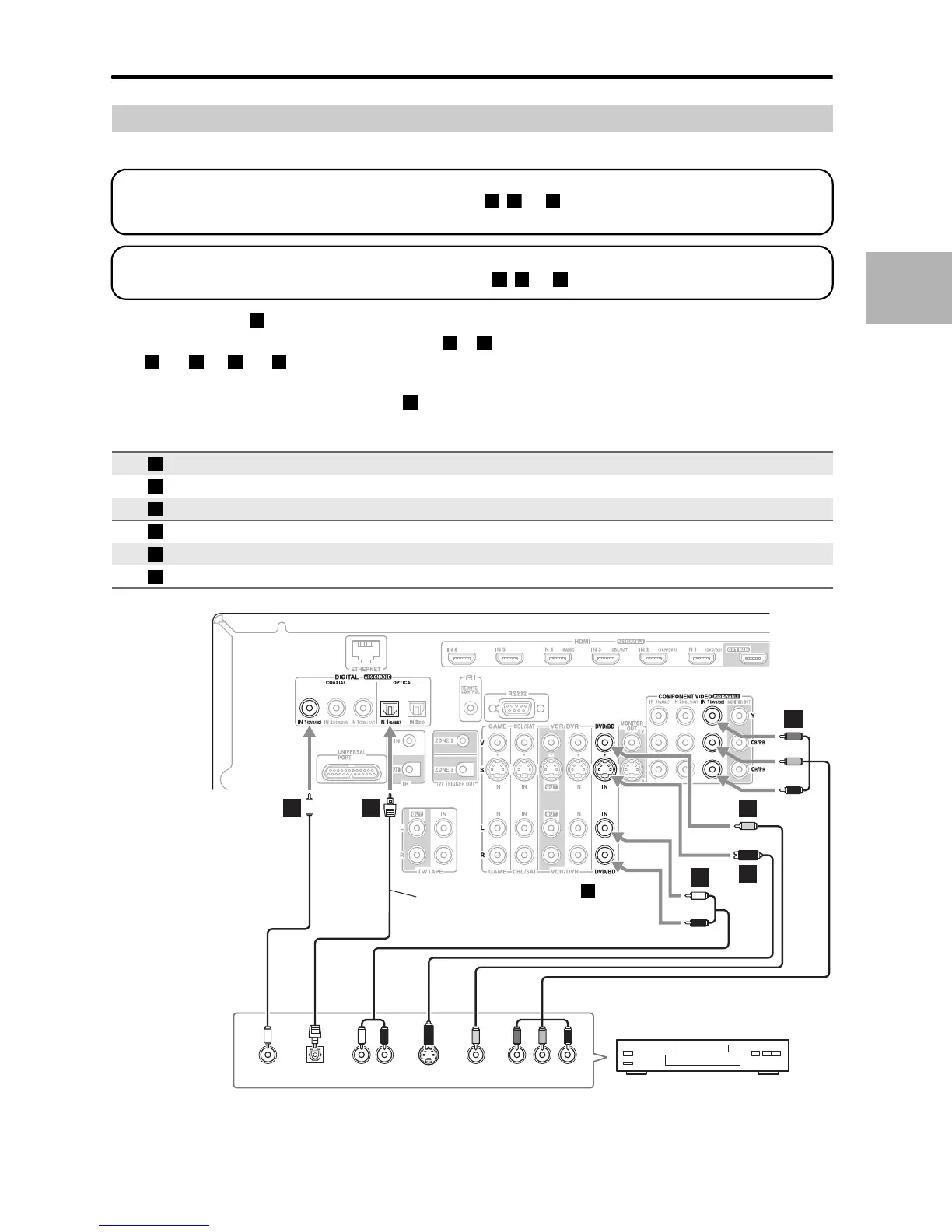 • With connection , you can listen to and record audio from your DVD player or listen in Zone 2 or Zone 3.