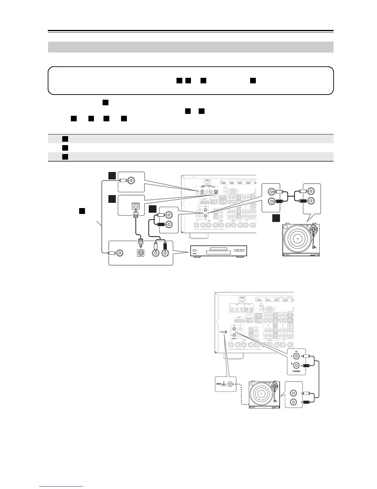 • With connection , you can listen to and record audio from your CD player or listen in Zone 2 or Zone 3.