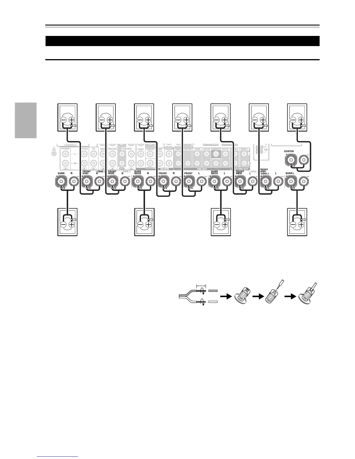 • Do not insert the speaker code directly into the center hole of the speaker terminal.