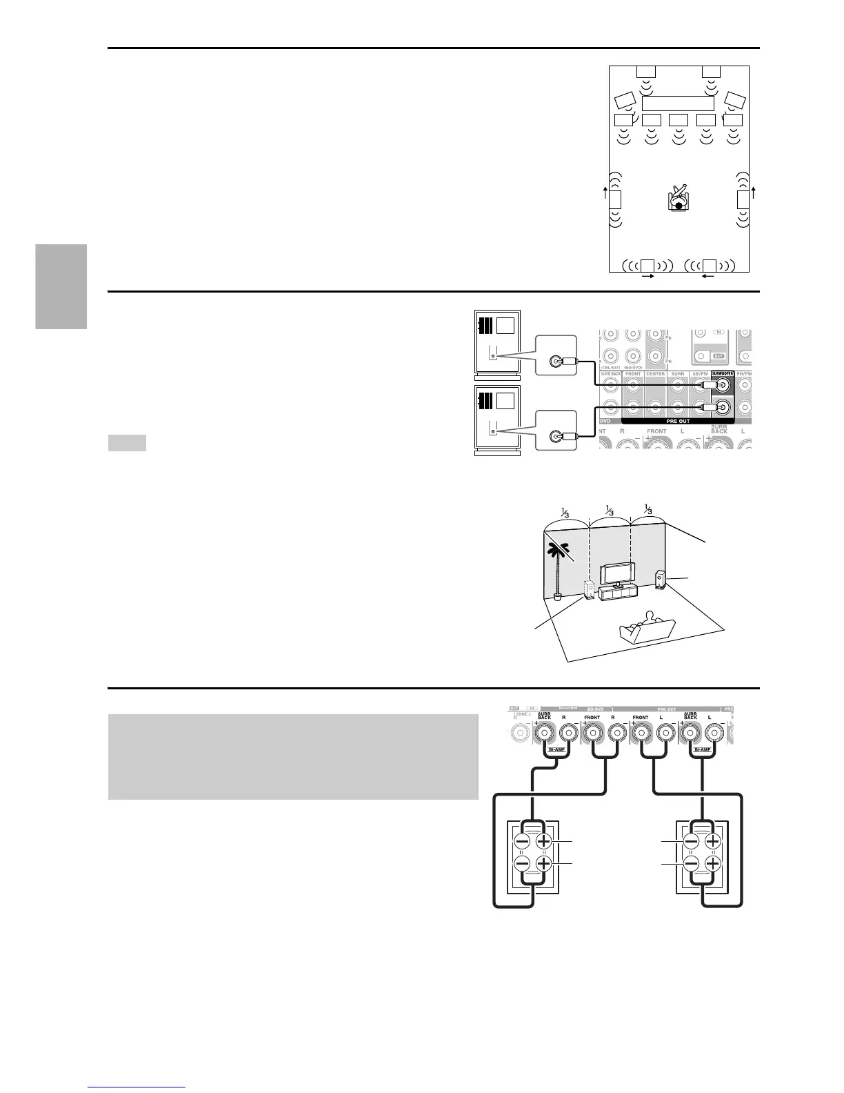 • Bi-amping can be used only with speakers that support bi-amping. Refer