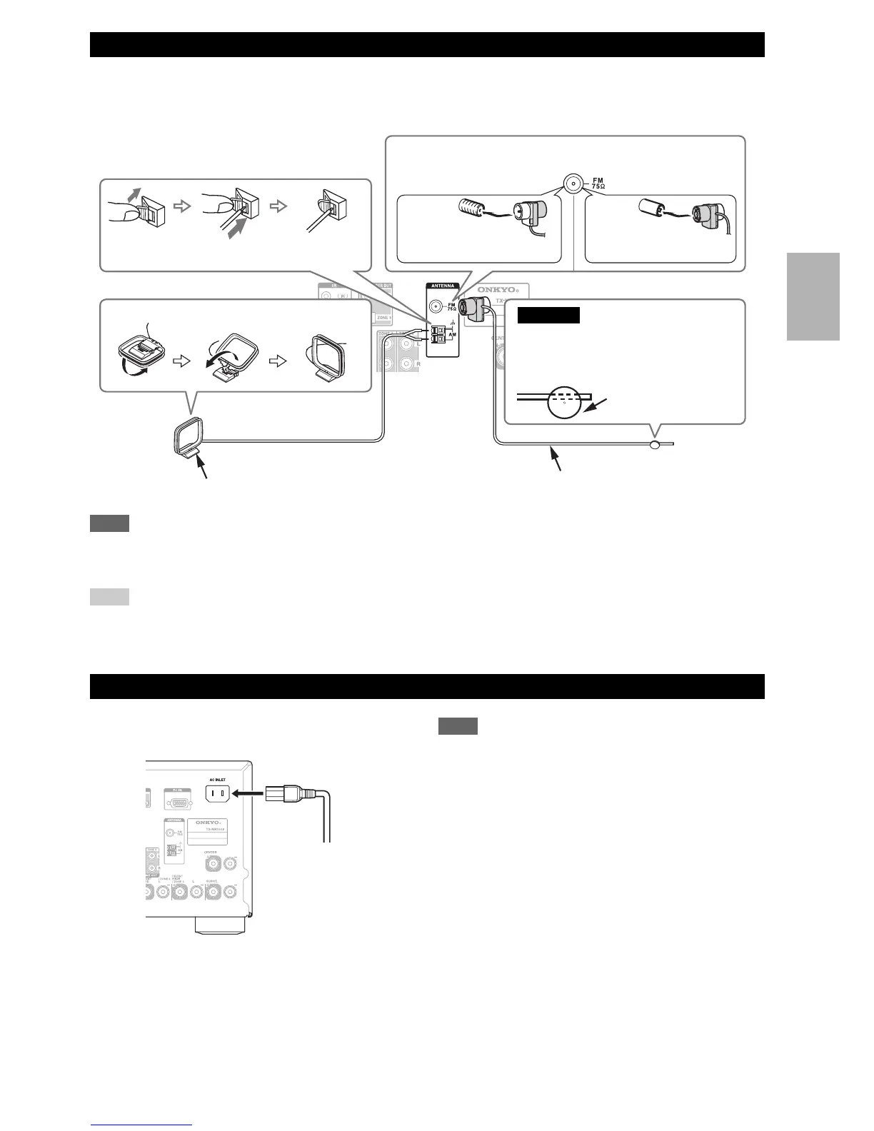This section explains how to connect the supplied indoor FM antenna and AM loop antenna.