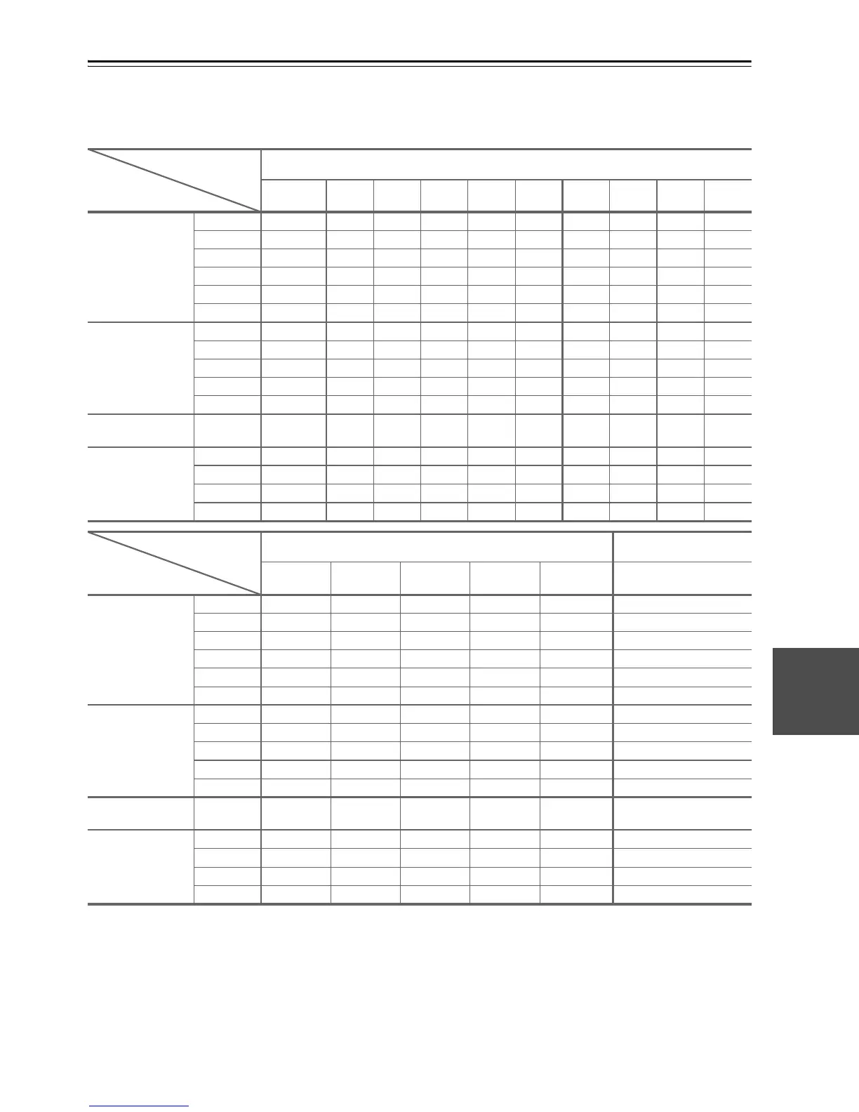 The following tables show how video signals at different resolutions are output by the AV receiver.
