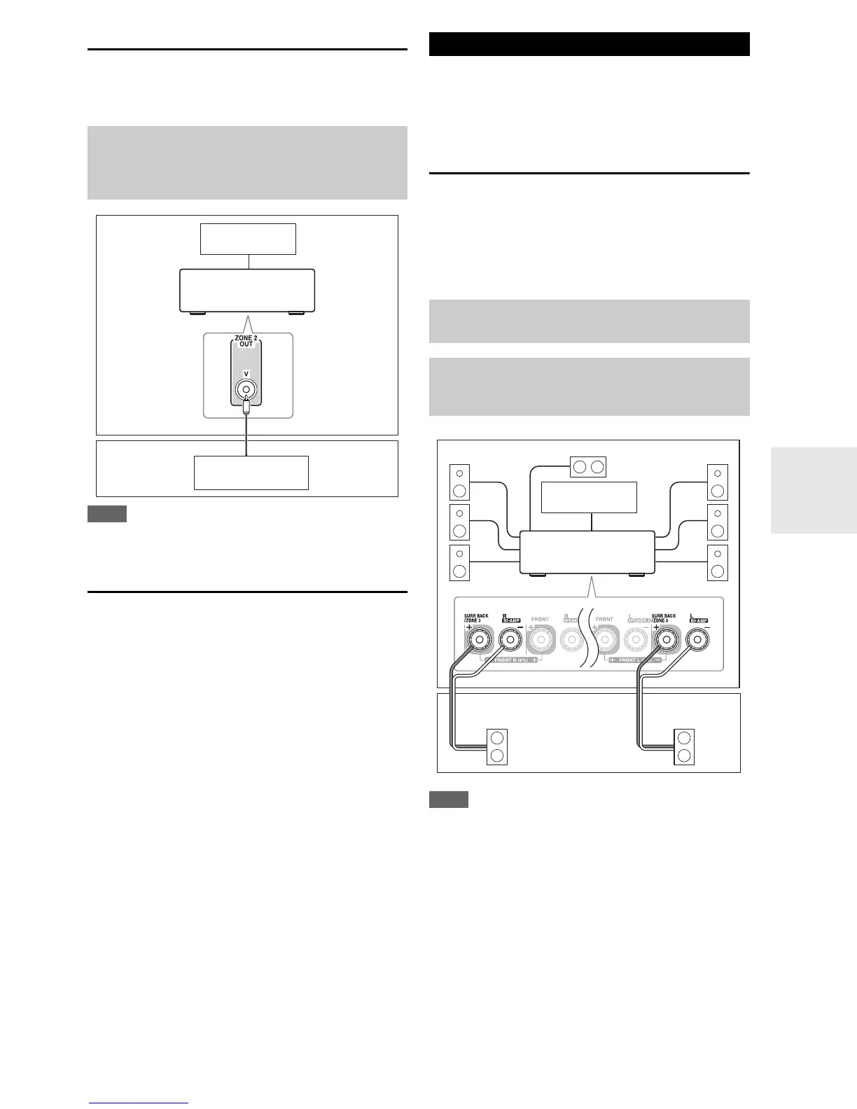 • Connect your Zone 3 speakers to the AV receiver’s SURR