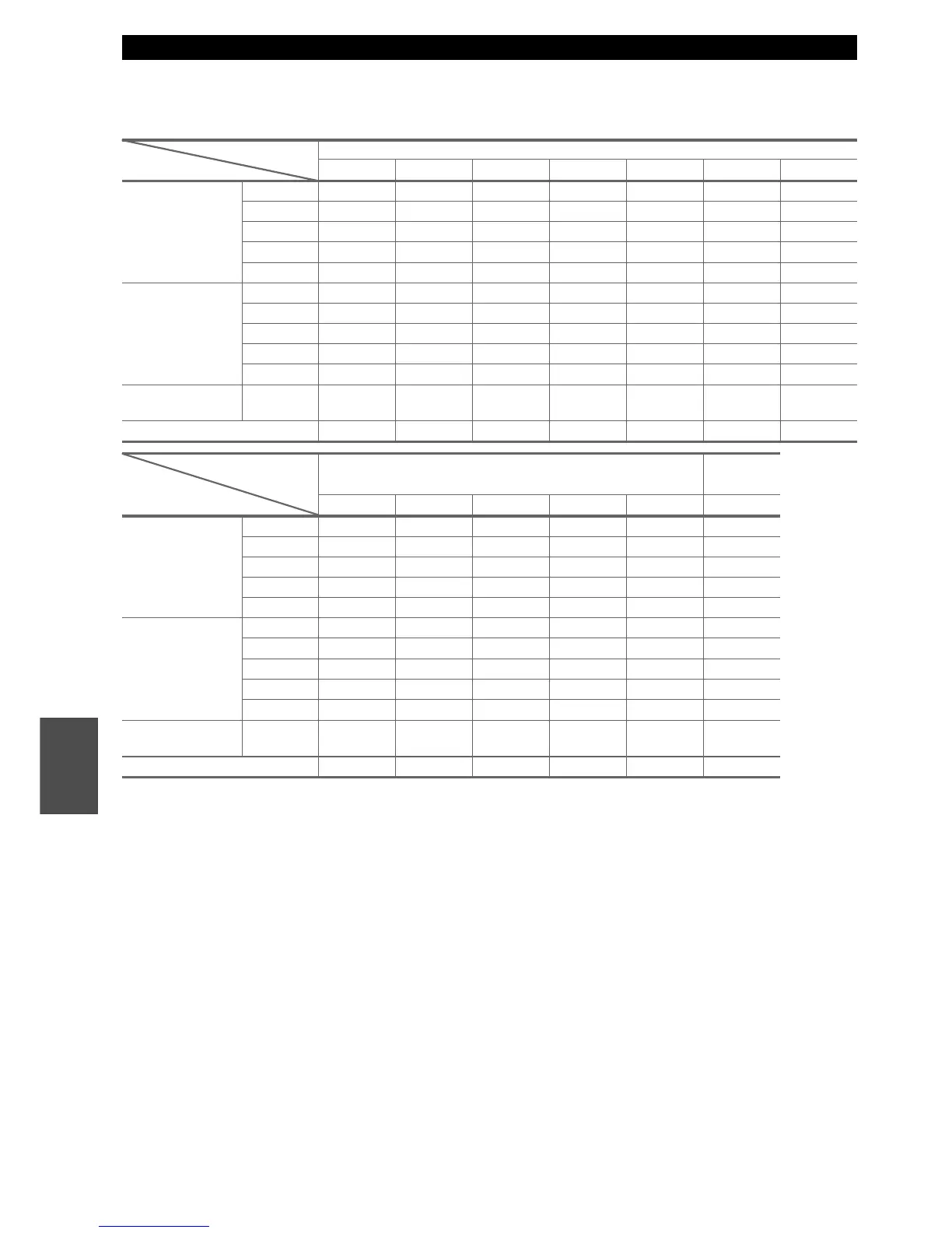 The following tables show how video signals at different resolutions are output by the AV receiver.