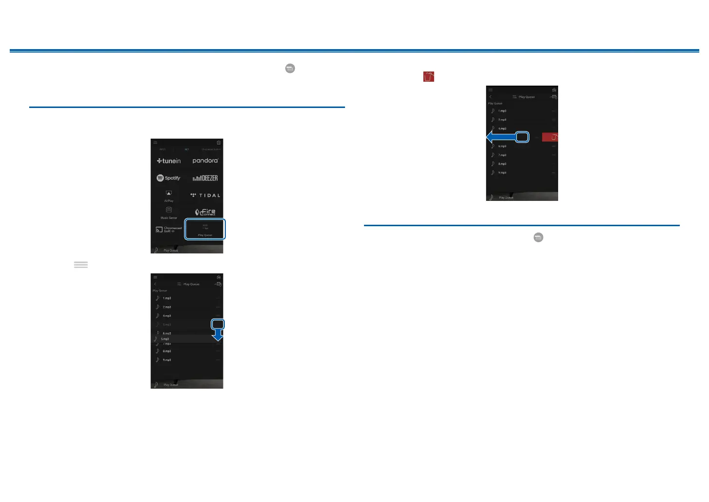 1. Select the “NET” input, tap the “Play Queue” icon, and enter the Play Queue
