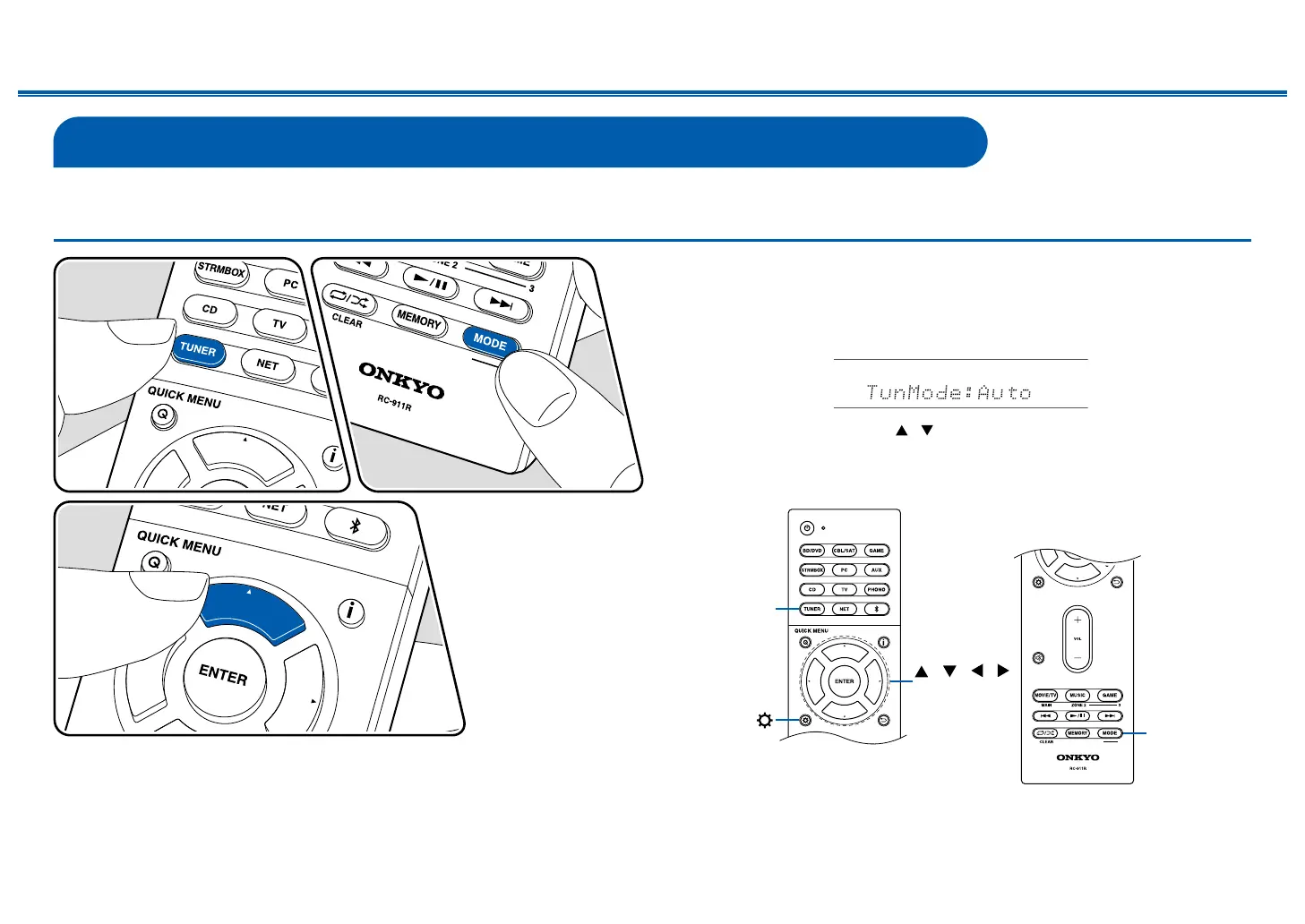 2. Press MODE to display "TunMode: Auto" on the display.