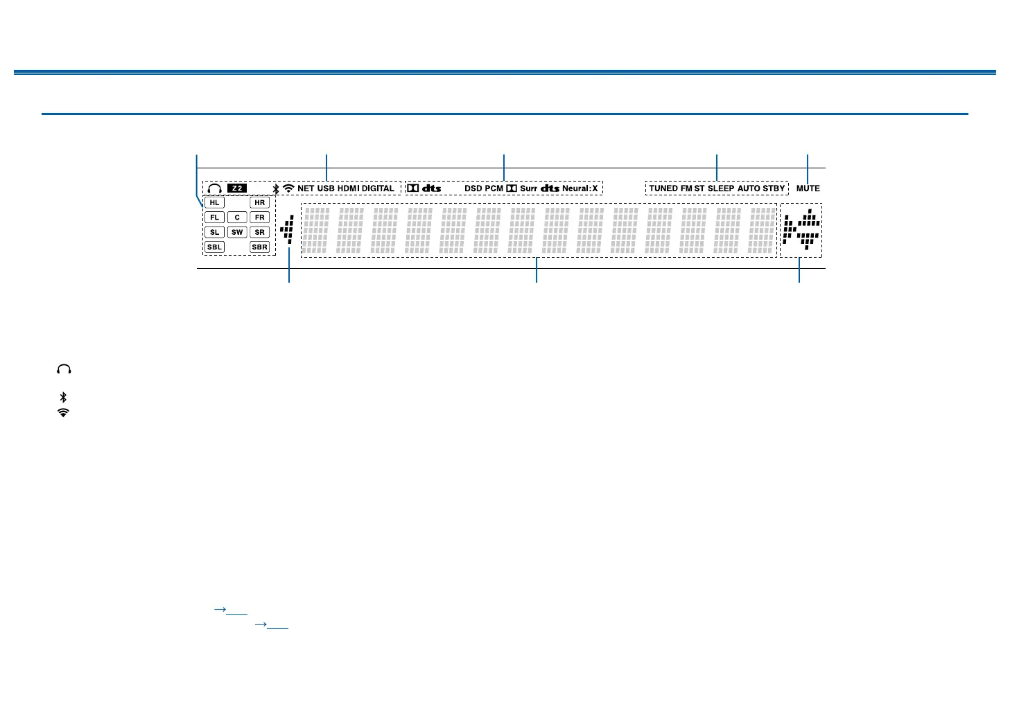 1. Speaker/Channel display: Displays the output channel that corresponds to the