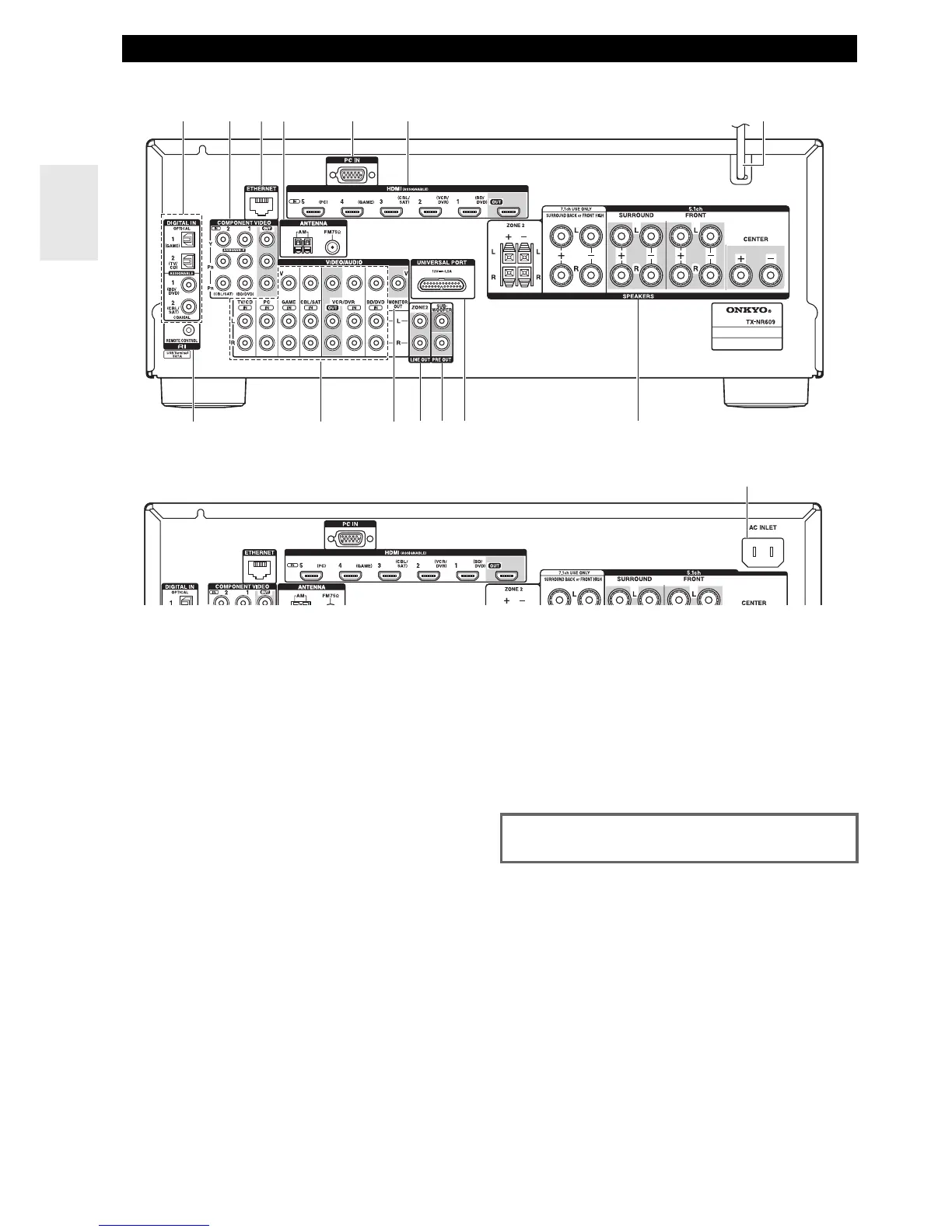 (BD/DVD IN, VCR/DVR IN and OUT, CBL/SAT