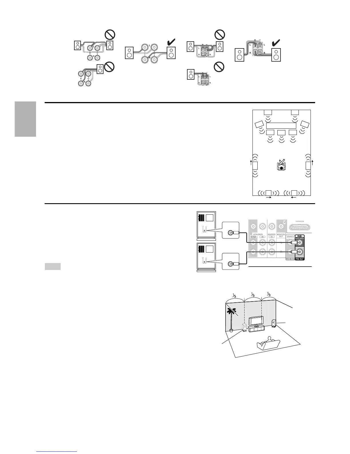 • Don’t connect more than one cable to each speaker terminal. Doing so may damage the AV receiver.
