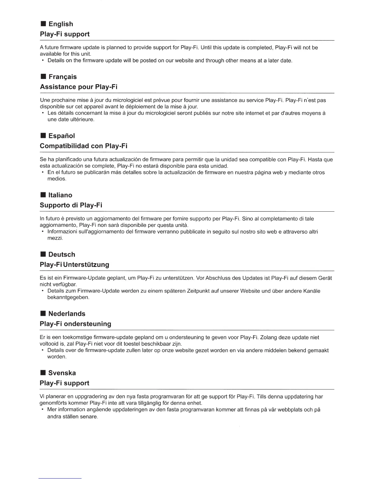 een toekomstige firmware-update gepland om u ondersteuning te geven voor Play-Fi. Zolang deze update niet