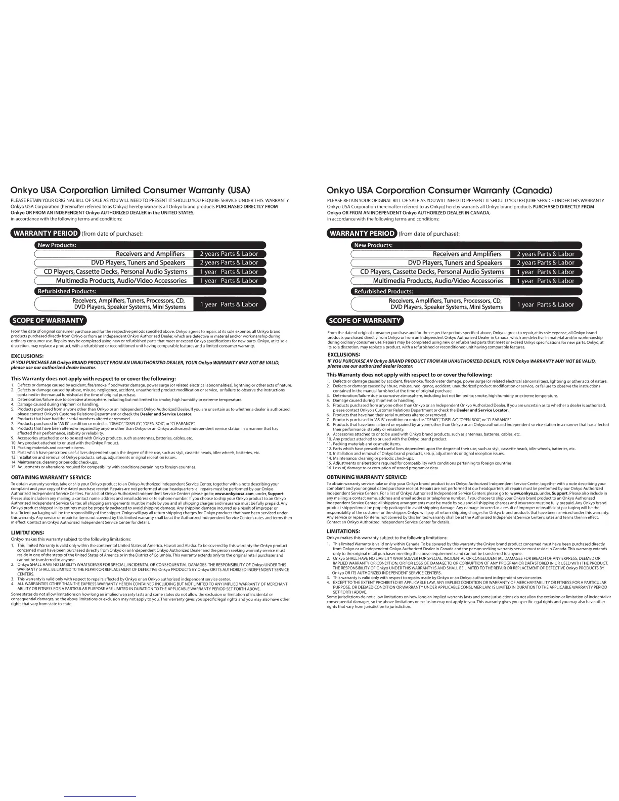original dated purchase receipt. Repairs are